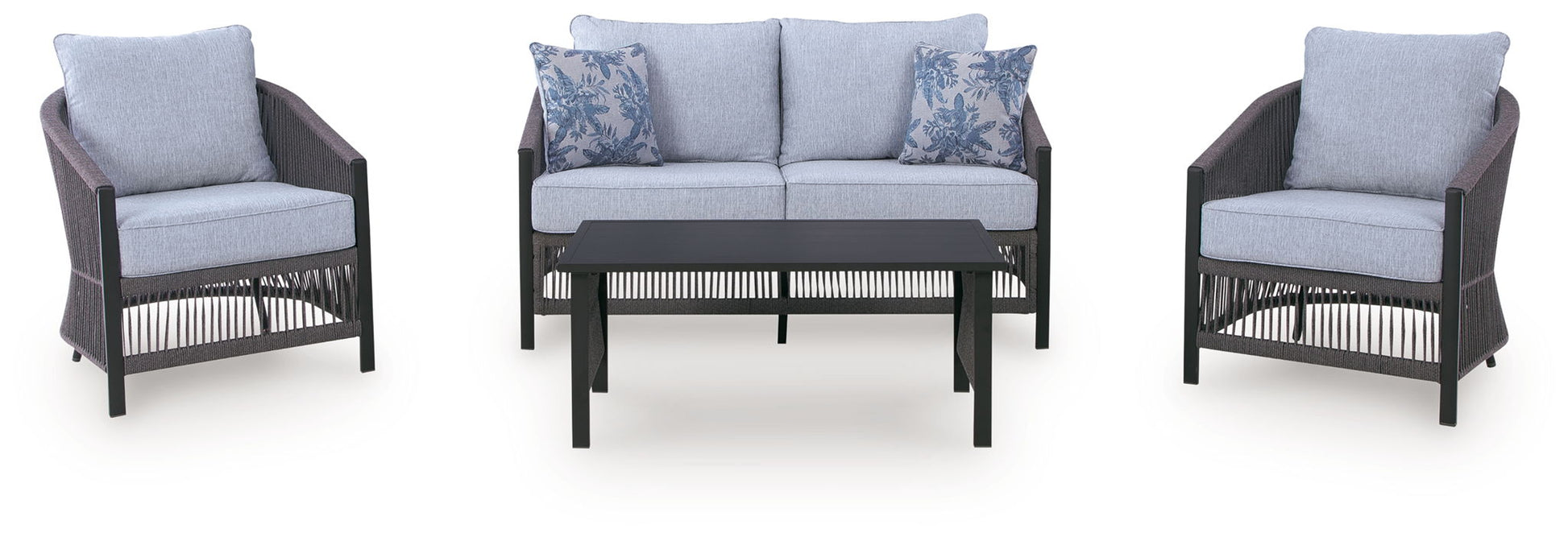 Bridges Beach - Loveseat, Lounge Chairs, Table Set (Set of 4) - Gray