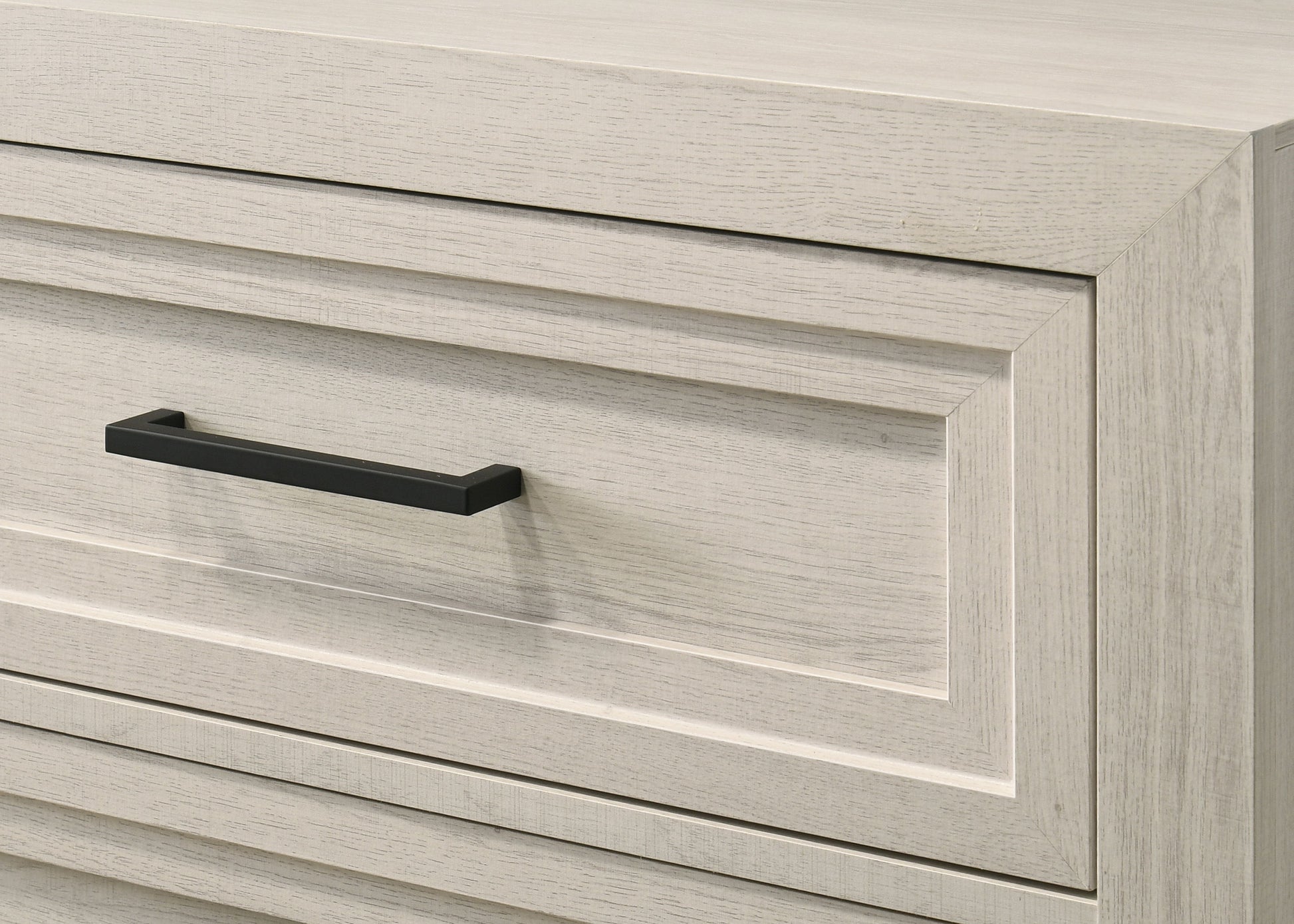 Elevate your bedroom with this elegantly designed furniture collection, blending contemporary sophistication with timeless charm. The soft, light wood finish exudes a sense of tranquility, while the intricate panel detailing adds a touch of refined craftsmanship. Designed for both style and functionality, this set features ample storage solutions, including spacious drawers with sleek, modern handles that enhance its aesthetic appeal. Complemented by coordinating pieces that bring harmony to the space, this collection is the ideal blend of beauty and practicality, making it a perfect addition to any home.