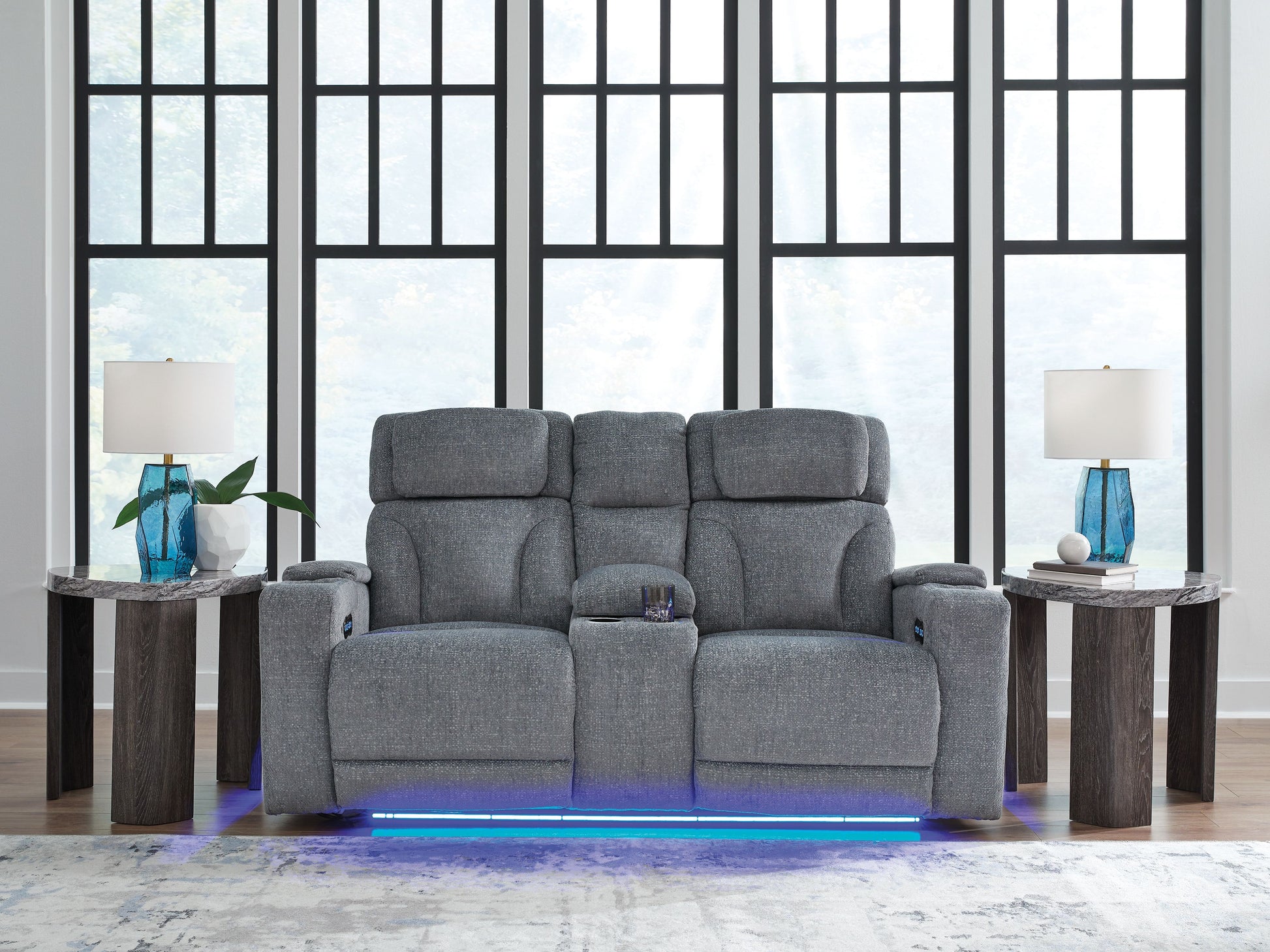 Studio Cave - Power Reclining Loveseat with Console - Steel