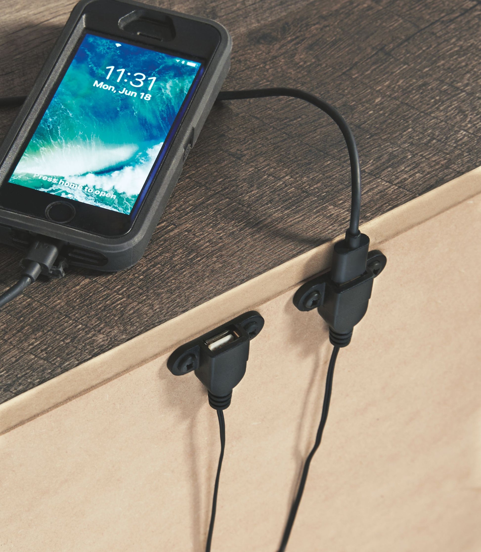 - 2 slim-profile USB charging stations